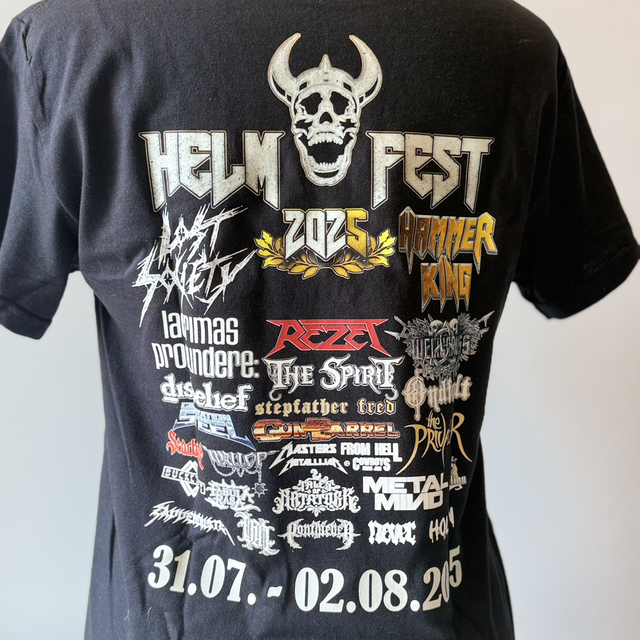 Zum 5-jährigen Jubiläum des HelmFest wurde ein ganz besonderes Motiv geschaffen: Unser legendärer Wikinger – älter, weiser, aber kein bisschen leiser – thront auf seinem eisernen Sitz. Dieses Shirt ist ein Denkmal für alle, die das HelmFest groß gemacht haben. Und für alle, die dabei sind, wenn Legenden gefeiert werden.