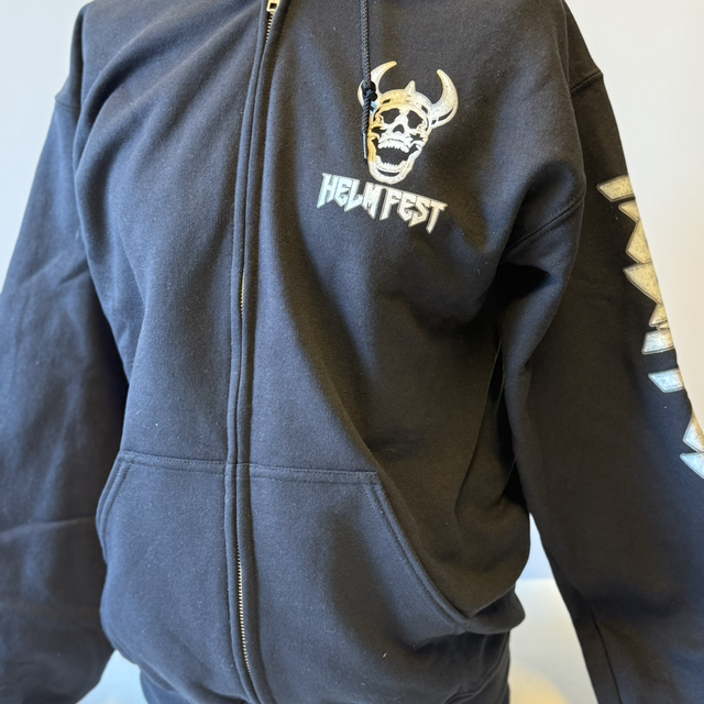 Exklusiv zum 5-jährigen Bestehen haben wir diesen limitierten HelmFest-Zipper für euch rausgehauen. Mit fettem Rückenprint, Ärmel-Logo und kultigem Skull auf der Brust zeigt ihr klar, wo ihr hingehört. Perfekt für Festival, Straße oder einfach den Alltag im Metal-Style.